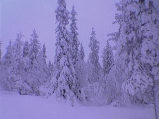 Snöläget är ganska dåligt fast det ser idylliskt ut. Det är bara c. 30 cm snö i skogen.