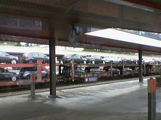 Posted on 18.2 2006Ett tåg kommer lastat med… Ford Fiesta. Ett långt tåg med nya bilar i Arth Goldau.