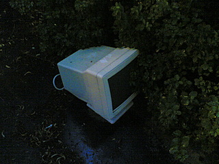 Posted on 4.8 20074.8 2007Monitor Någon svag individ (både fysiskt och mentalt?) har inte orkat bära sin gamla monitor längre än till häcken nära korsningen av Linnankoski och Valhalla (bilden är tagen några dagar sedan, då regnet öste ner, men monitorn är där fortfarande).