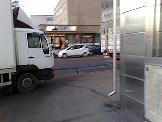 Posted on 22.12 2007Bogsering Ett foto från igår. En kreverad lastbil bogseras av en annan längs med trottoaren.
