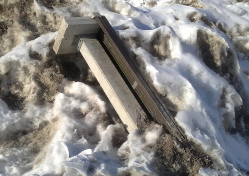 Posted on 10.3 2010Vandaler eller traktor? Må det skall vara snöplogen eller extra starka fyllon som vänt på betongbänken?