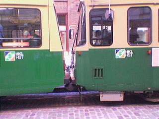 Två spårvagnar stannade så nära varandra att det smällde till.