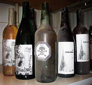 Jag hällde ut de sista kvarlämningarna av mina hemvin. De flesta var av det världskända brandet “Husets”. Pärlor som Rabarbervin från 1994 och -95 rann ner i avloppet följt av starka kväljningar. Det ökända “Fares Vittvin” av äppel var aldrig drickbart och jag vågade inte ens lukta på det. “Husets Starka vittvin” från -95, gjort på rönnbär, var det enda som inte gav ryckningar i spymusklerna.