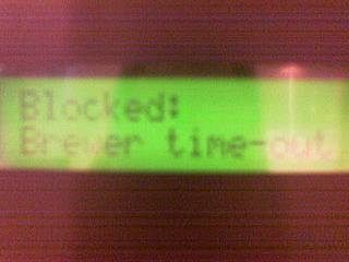 Posted on 2.11 2006 by jnyTime-out Kaffebryggartomten som bor i kaffeautomaten har tydligen tagit sig en time-out. Inget kaffe får man.
