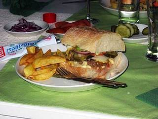 Posted on 6.11 2006 by jnyGårdagens mat Hemlagade stora och tjocka pommes frites och hamburgare gjort på italienskt lantbröd. Gott!