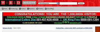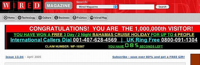 Har jag nu gått miste om mitt livs chans till en gratis resa till Bahamas? De 85 sekunderna har gått redan. Bluff eller ej? När jag klickade på reklamen ersattes den bara av en annan blinkande congratulations med ett telefonnummer.