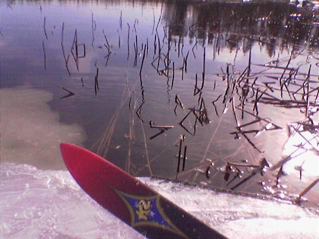 Posted on 2.4 2005 by jnyOffpiste Ute på isen med mina gamla telemarkskidor. De är utmärkta isskidor. Men man skulle behöva vattenskidor också.