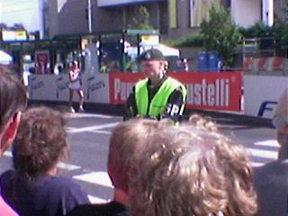 Posted on 12.8 2005 by jnyEtt fall för militärpolisen Det gäller att stå och vakta att inte den ivriga publiken överfaller tävlarna i herrarnas 50 km gång.